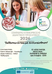 Στο πλαίσιο των δράσεων της Μονάδας Ισότιμης Πρόσβασης πρόκειται να πραγματοποιηθούν συναντήσεις ενημέρωσης και ευαισθητοποίησης για τους/τις διδάσκοντες/ουσες, με θέμα “Διδάσκω-οντας με ενσυναίσθηση”, σχετικά με την υποστήριξη φοιτητών/τριών με αναπηρία και ειδικές εκπαιδευτικές ανάγκες στο Πανεπιστήμιο Κρήτης.