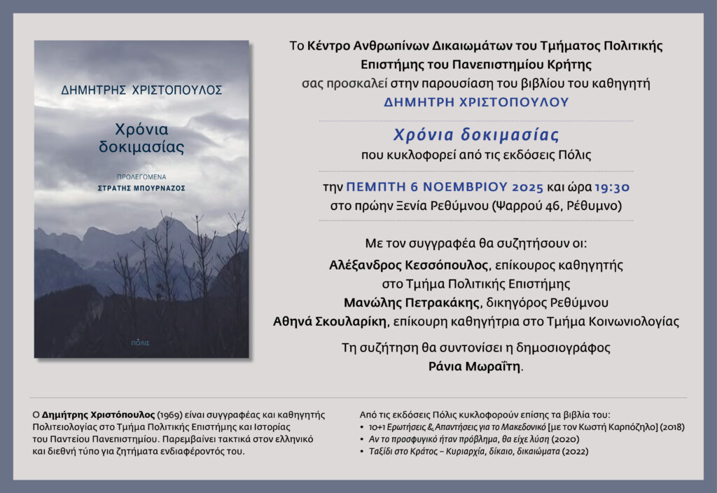 Πολιτικής Επιστήμης του Πανεπιστημίου Κρήτης διοργανώνουν: